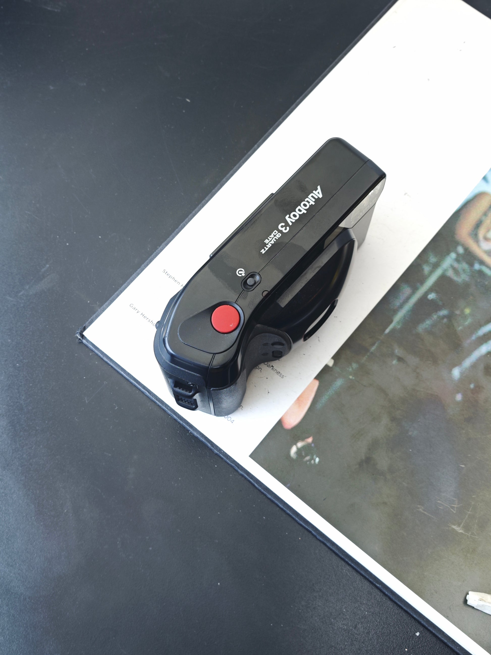 The Canon Autoboy 3 is a classic 35 mm fully automatic film camera designed for simplicity and reliability. It features a fast 38 mm f/2.8 Canon lens that is capable in low light thanks to the wide aperture, and an active autofocus system using near-infrared triangulation for quick and reliable focusing.