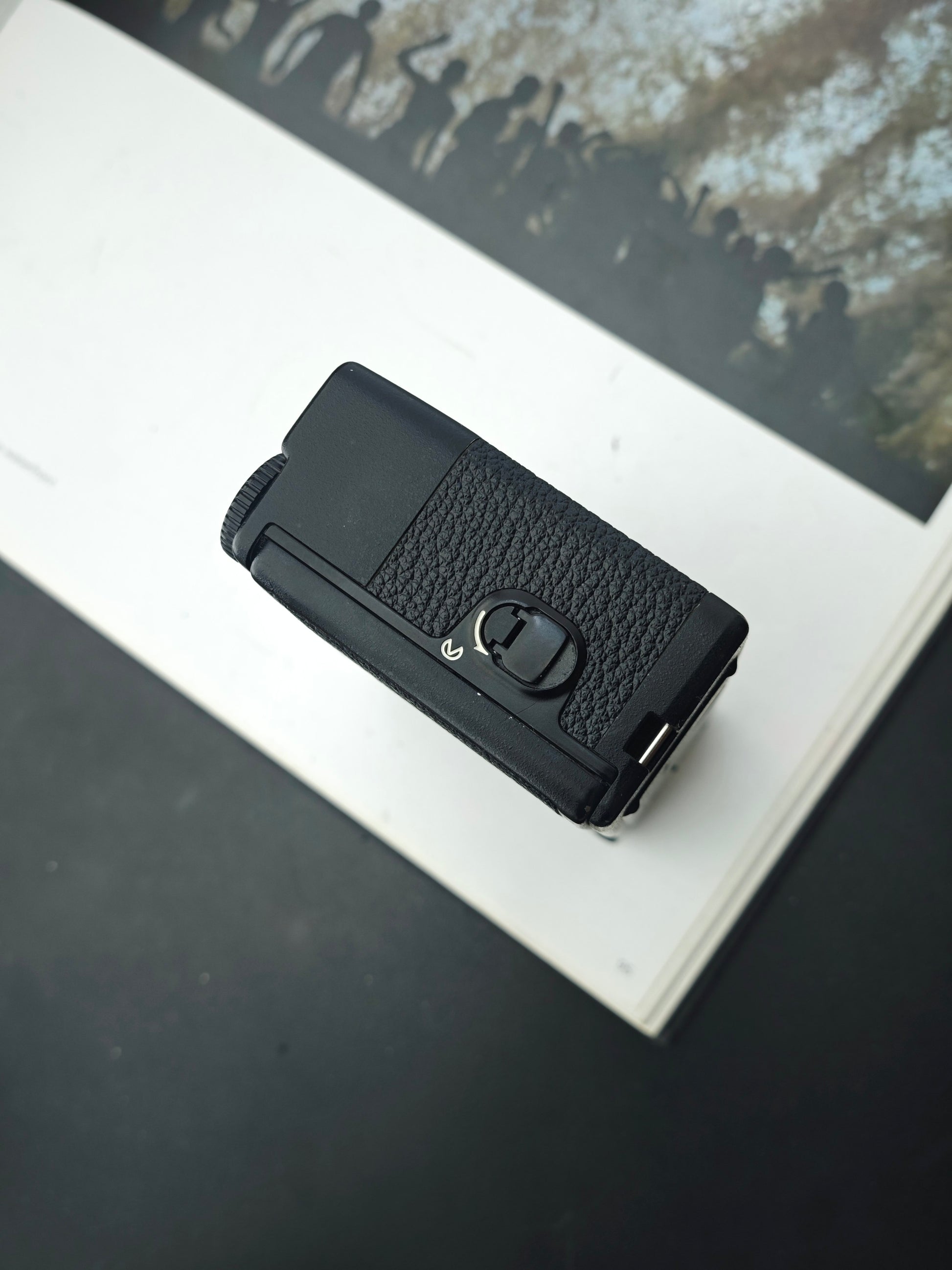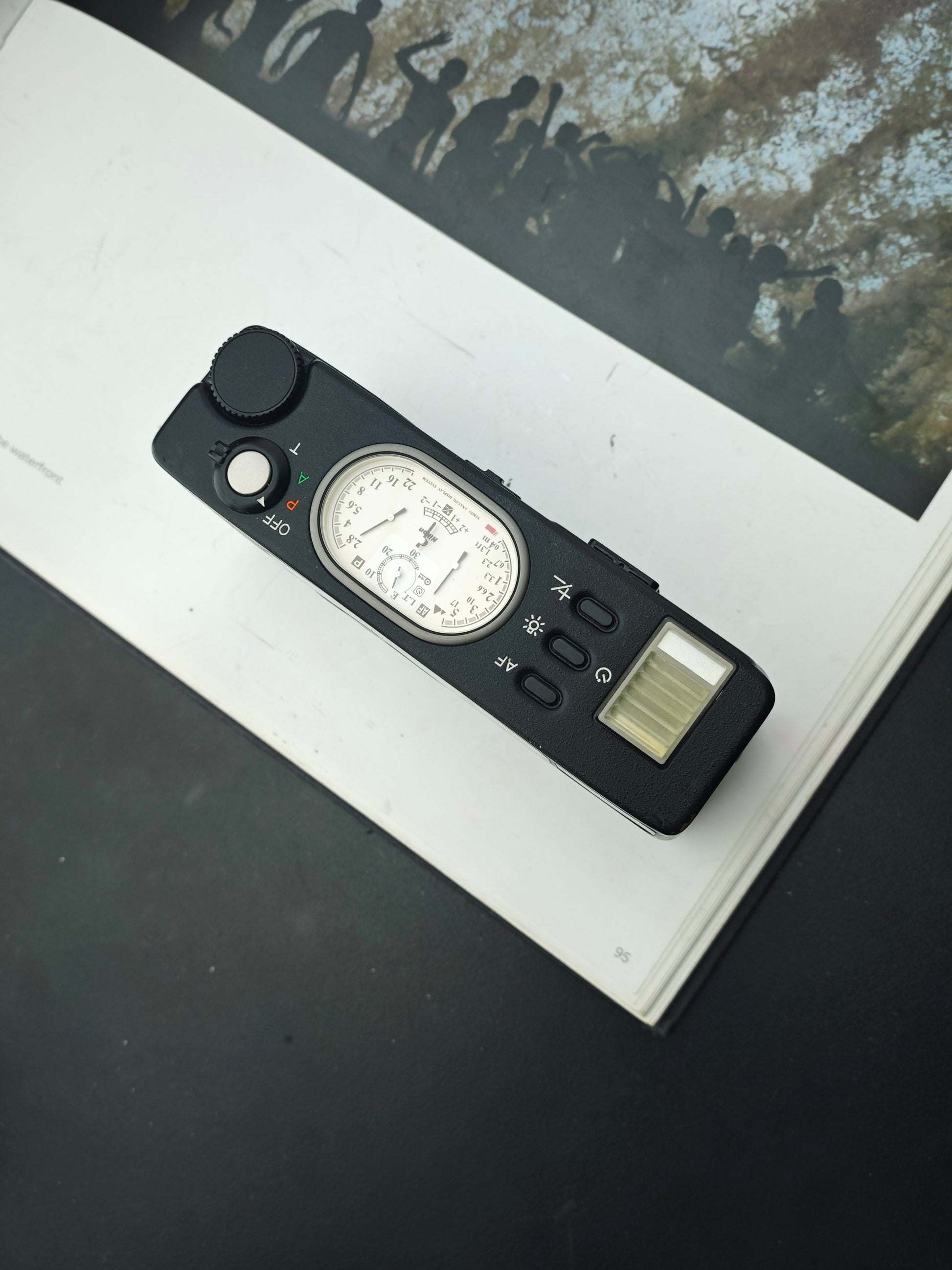Display: Analog needle display (watch-style dials) on top plate for shutter, aperture, focus distance, exposure compensation