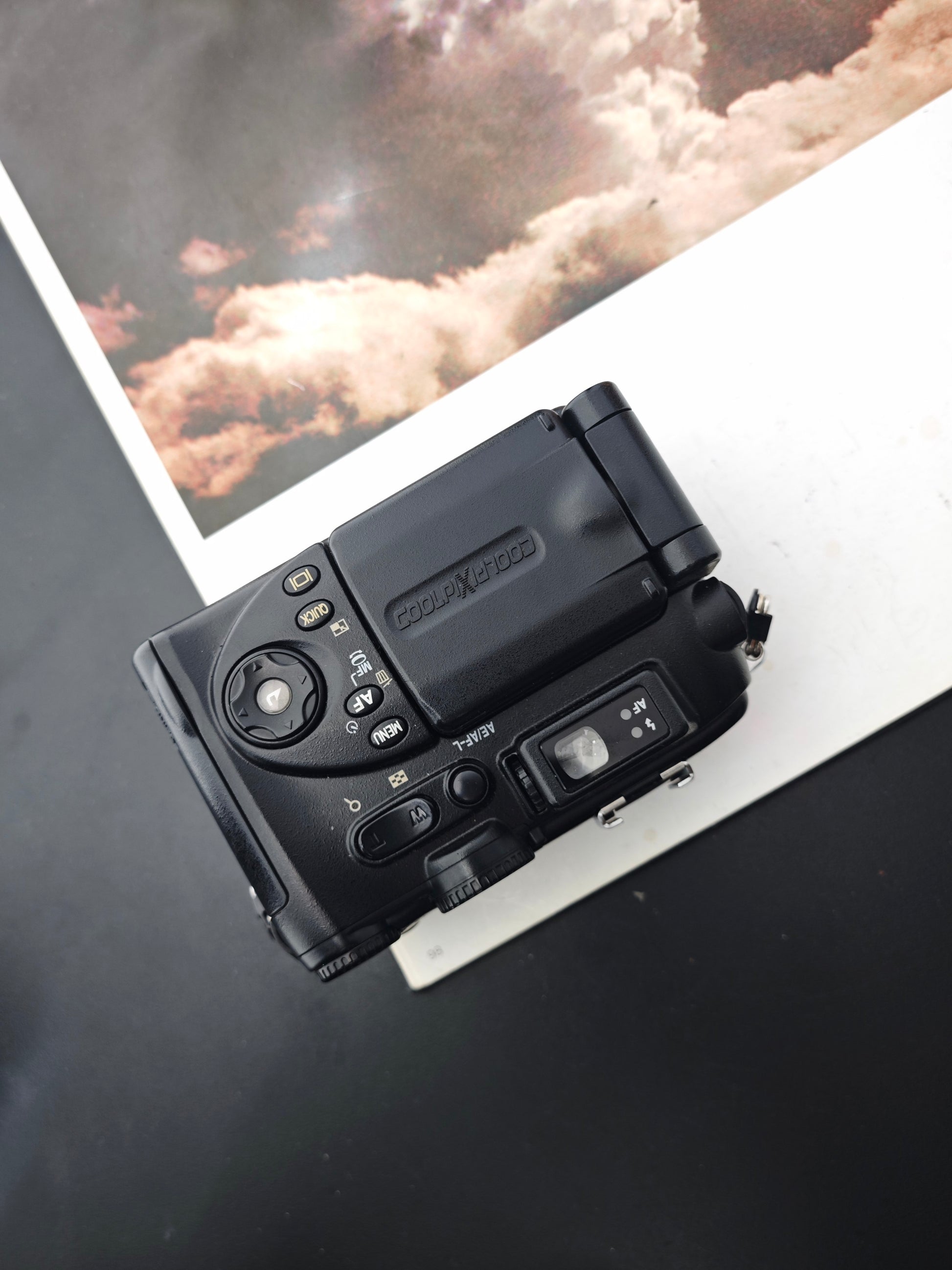 The Nikon Coolpix 5400 is a high-performance digital compact camera designed for photography enthusiasts. With its 5.1MP CCD sensor, wide-angle 28–116mm equivalent zoom lens, and full manual controls, it's built for flexibility in various shooting scenarios. The tilting LCD screen allows for creative angles, while its macro capabilities let you shoot subjects as close as 1 cm. The camera also supports RAW-like TIFF shooting and features a hot shoe for external flash units, making it a solid choice for serious hobbyists and collectors of early digital gear.