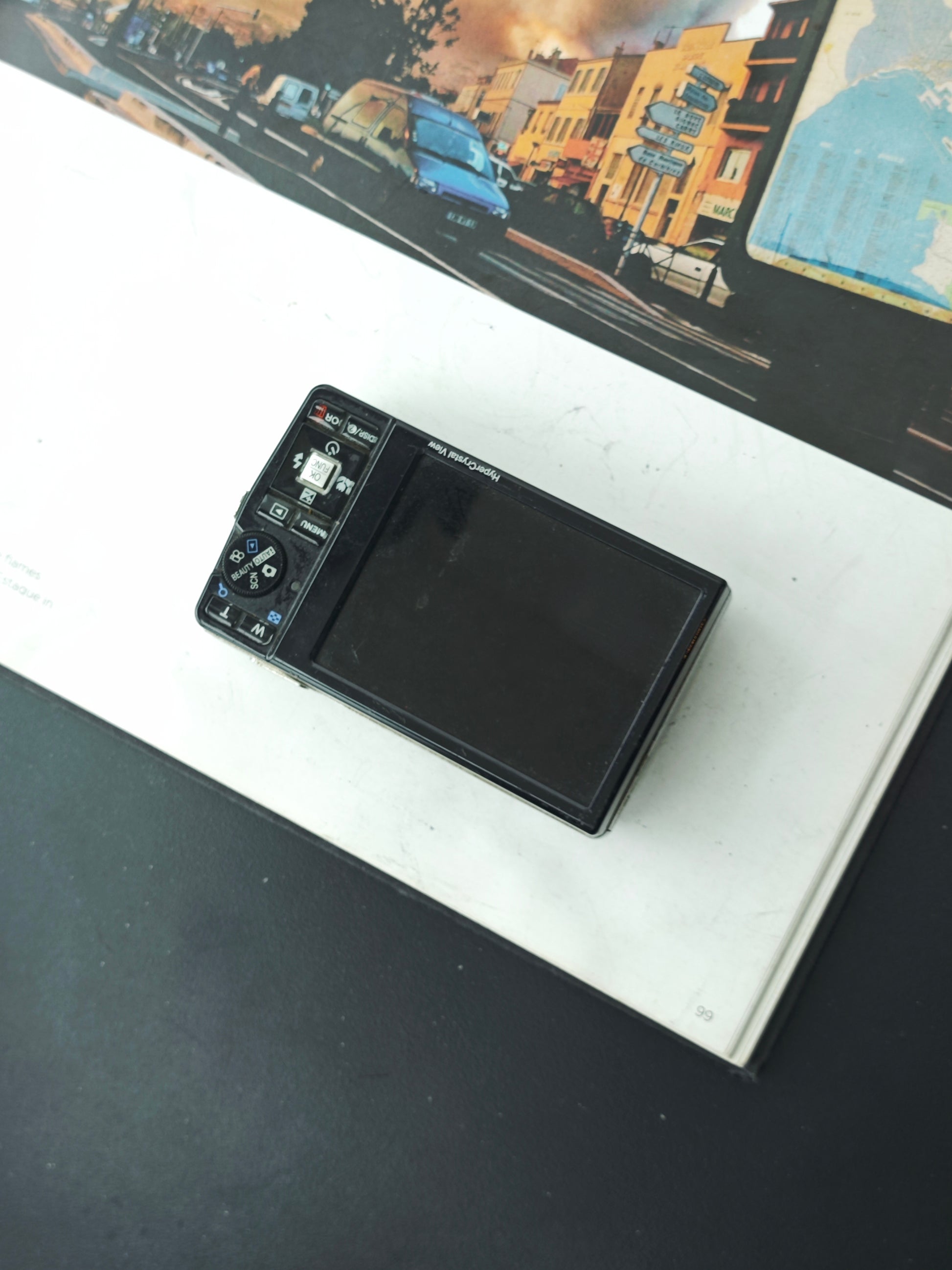 - LCD screen has noticeable scratches; screen deterioration with black lines (does not affect photos)