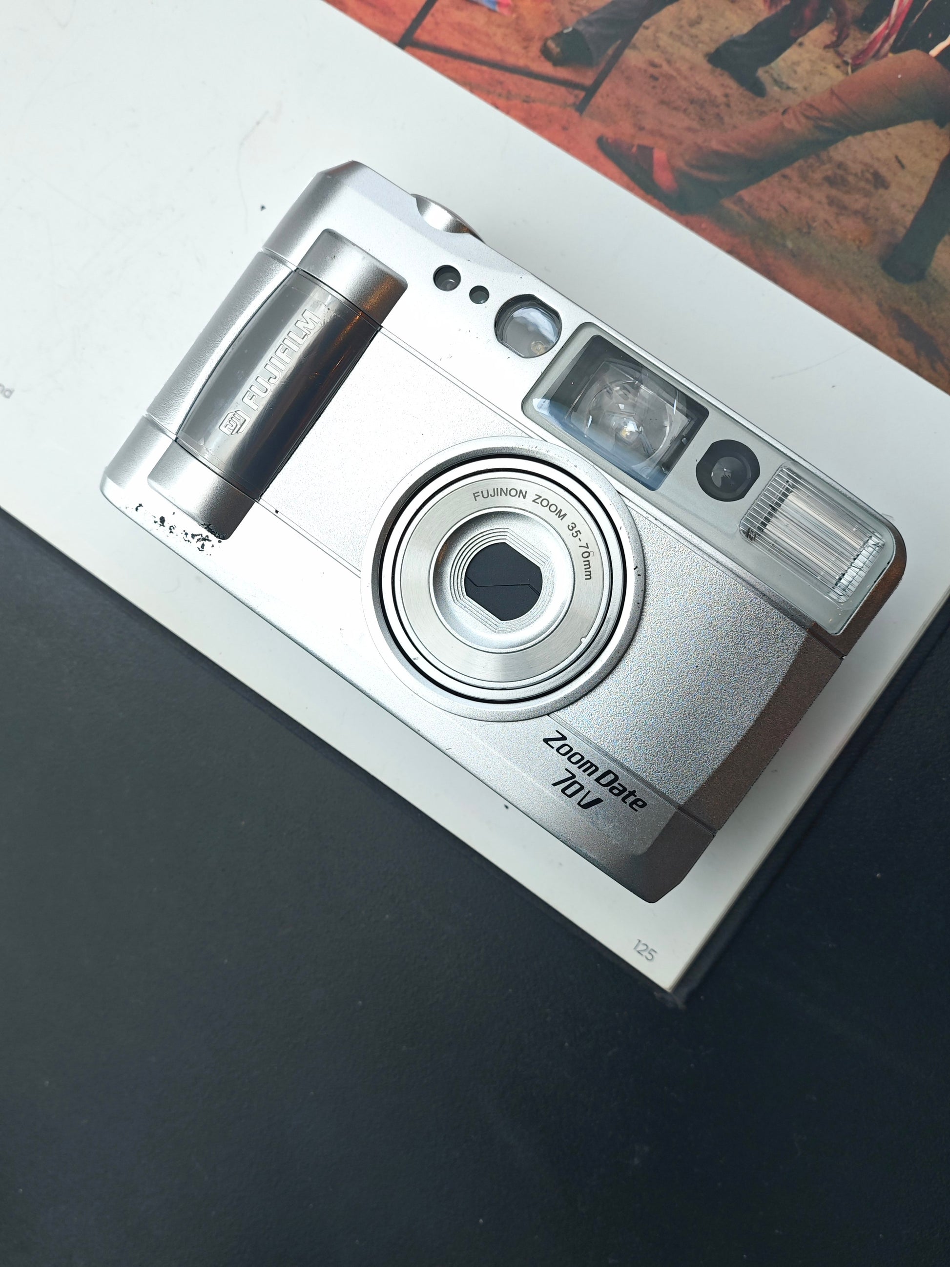 The Fujifilm Zoom Date 70V is a stylish and compact 35mm point-and-shoot camera designed for easy everyday use. It features a 38–70mm Fujinon zoom lens, giving users flexibility from wide-angle to short telephoto shots. With automatic exposure and infrared autofocus, it delivers consistent results with minimal effort. The camera includes a built-in flash with several useful modes, including red-eye reduction and slow sync for low-light photography. Its quartz date model allows for convenient date imprinting on film. Ideal for casual photographers seeking reliability, portability, and simplicity in a film camera.