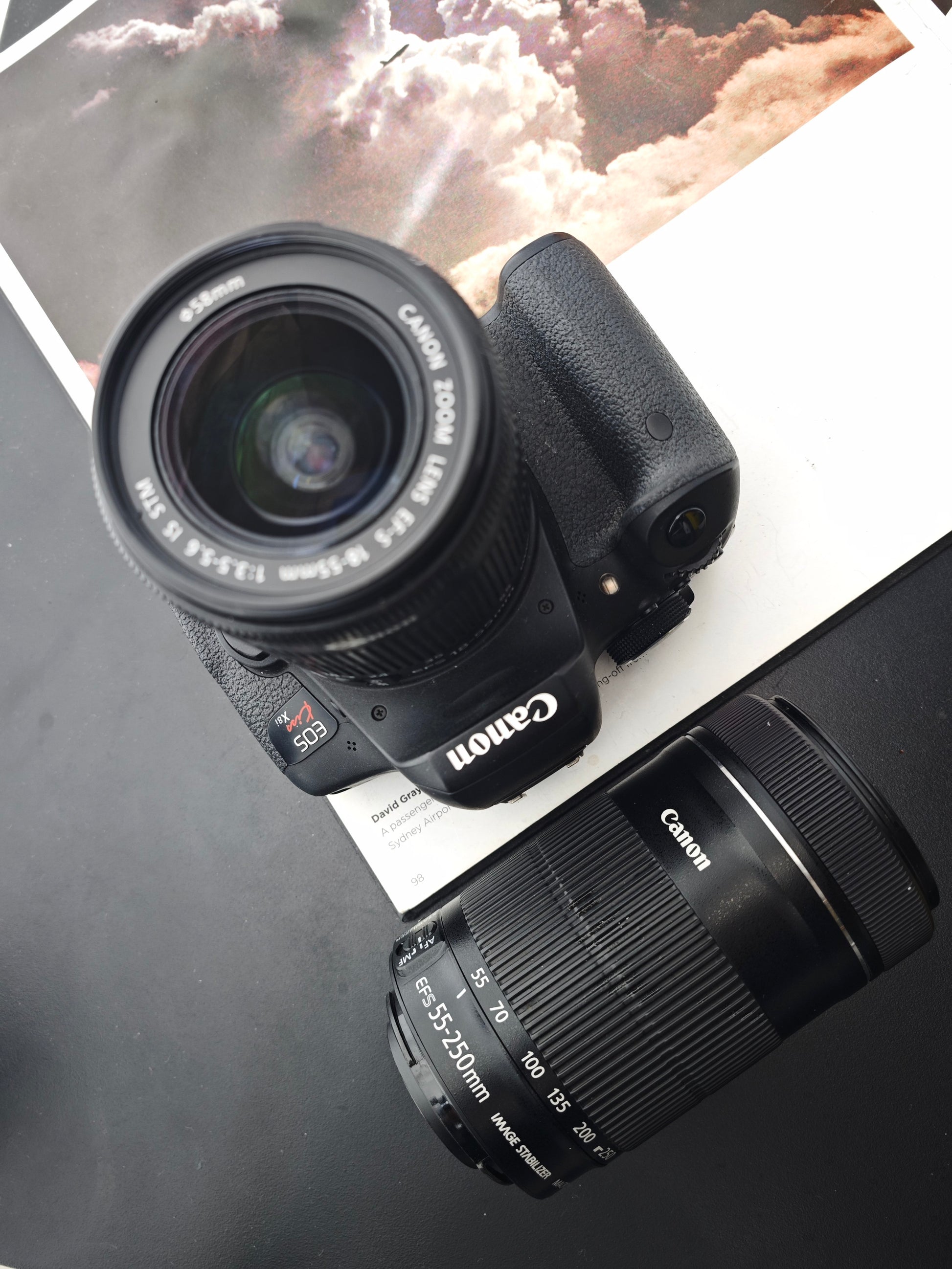 - 55-250mm lens: Slight haze, minor fungus, moderate dust.